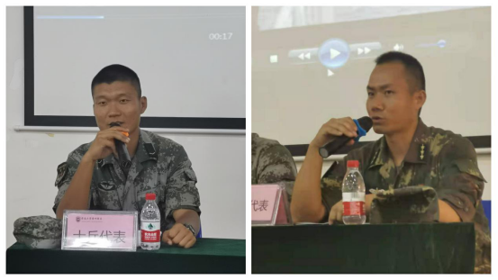 会上火箭军提干大学生代表、海防旅优秀大学生士兵代表分别结合自己的经历做了发言,分享了自己对参军入伍的感想,对大学生加入军营提出了倡议。