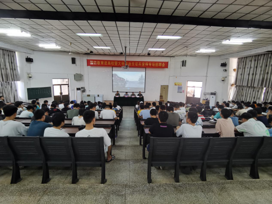 最后,陈俊主任在会上做了大学生征兵工作的政策宣讲,首先介绍了我国国防事业的伟大成就和目前的国防状况,大大激发了同学们的热情,增强了同学们对我国国防工业的自豪感和自信心。接着就当前的国家政策、学校政策等方面阐述了当今大学生参军入伍的优厚待遇,激励广大有志青年参军卫国。最后,陈主任分析了当前大学生严峻的就业形势,传达了国家最新的关于退伍大学生的就业和考学政策,呼吁广大学子参军历练,不给青春留遗憾!