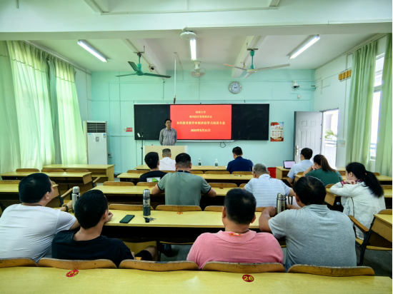 此次培训会由教学服务中心主任欧阳文圣主讲,他紧紧围绕教育部印发的关于《普通高等学校本科教育审核评估实施方案》文件精神,详细解读了新一轮的审核评估体系,认真传达了学校的审核评估方案的内容,系统讲解了1+3+3+1校内外综合评价体系、教师推进评估工作方略等。加深了教职工们对审核评估的认识。