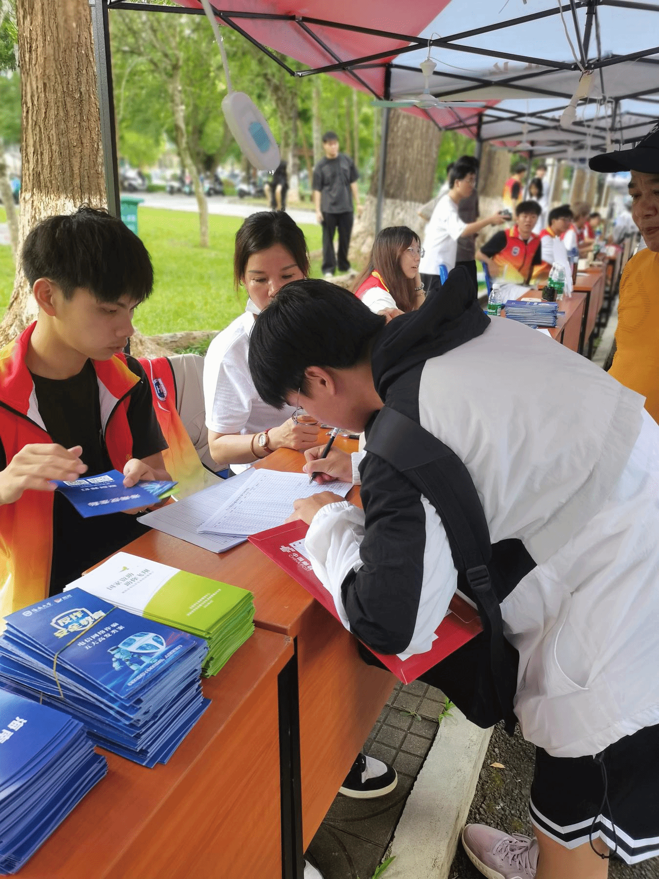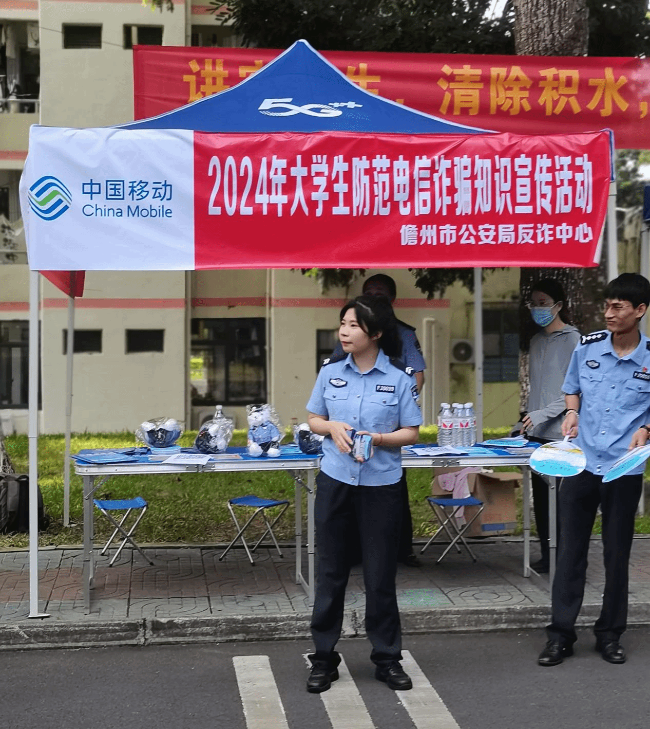 在儋州校区北门迎新处,学校与市公安局联合设立“大学生防范电信诈骗知识宣传活动点”。警务人员手持反诈宣传资料,面对面为学生们讲解诈骗手段、传授防范技巧,引导师生们关注并转发反诈公众号,吸引了众多师生的目光。