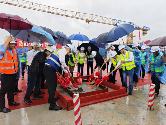 10月31日上午,WilliamHill体育儋州校区东坡学生宿舍及附属食堂(一期)项目举行封顶仪式。这是封顶仪式现场。奚碧莹 摄